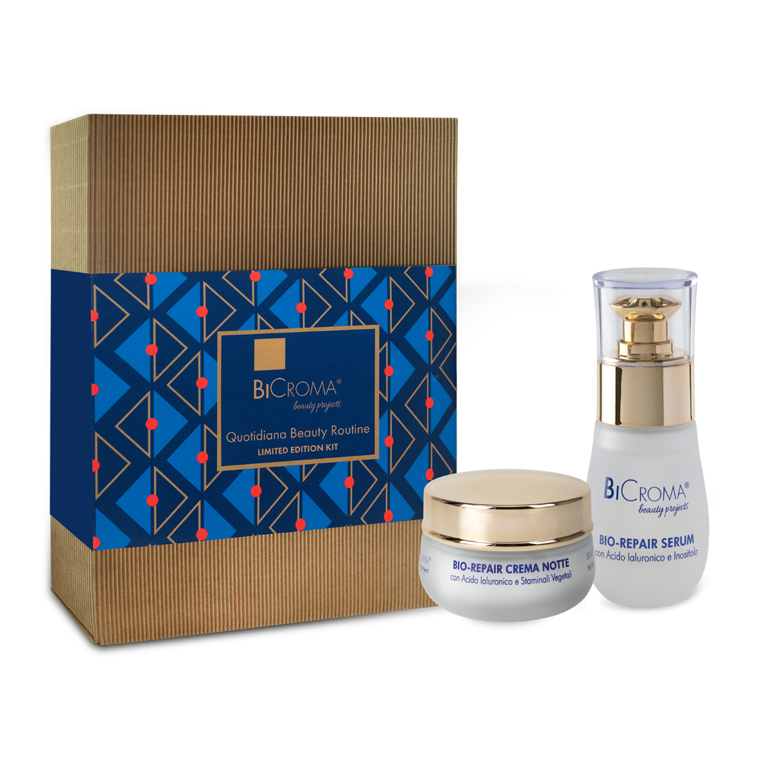 Limited edition kit with Bio-Reapir Serum, an effective super-hydrating serum with a filler-lifting effect, and Bio-Repair night cream, a specific night treatment formulated to restore a younger appearance to tired skin.